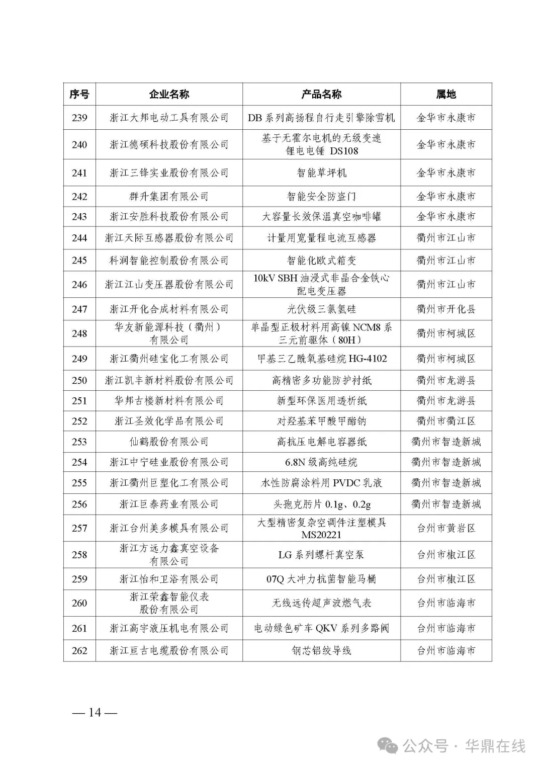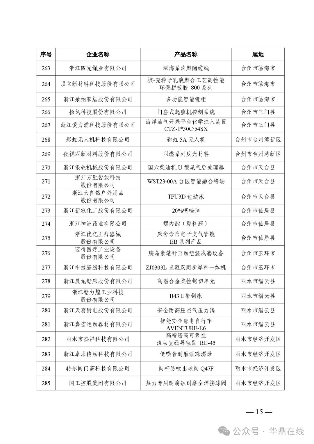 根據(jù)《關(guān)于強(qiáng)化企業(yè)創(chuàng)新主體地位 加強(qiáng)產(chǎn)業(yè)科技創(chuàng)新體系建設(shè)的意見(jiàn)》和《關(guān)于開(kāi)展2023年度“浙江制造精品”和浙江省優(yōu)秀工業(yè)新產(chǎn)品(新技術(shù))申報(bào)工作的通知》(浙經(jīng)信技術(shù)〔2024〕2號(hào))要求,經(jīng)企業(yè)申報(bào)、各地推薦、專家評(píng)審和公示,確定302項(xiàng)產(chǎn)品為2023年度“浙江制造精品”,現(xiàn)予以公布。