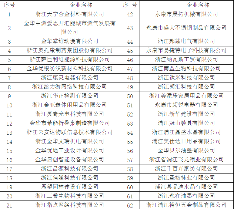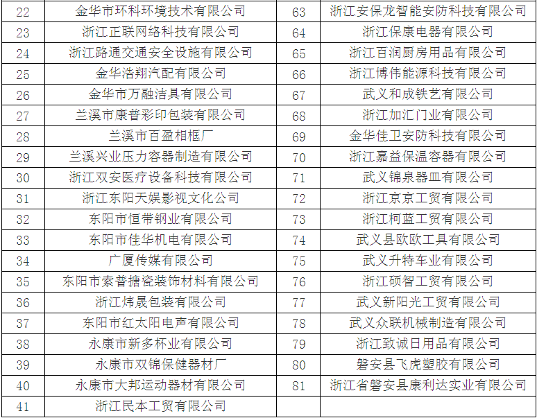 擬認(rèn)定2017年金華市高新技術(shù)企業(yè)名單