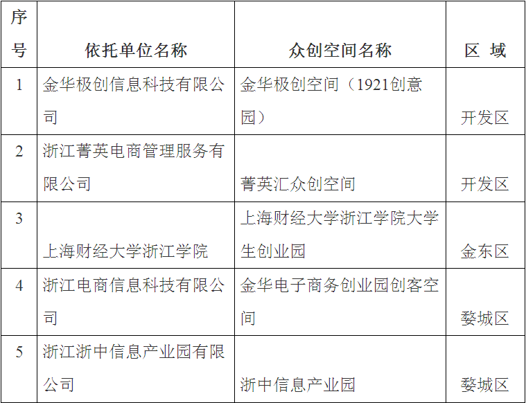 擬認(rèn)定市級(jí)眾創(chuàng)空間及依托單位名單