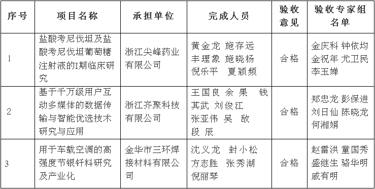 金華市級科技計劃項目驗收結(jié)果公示清單