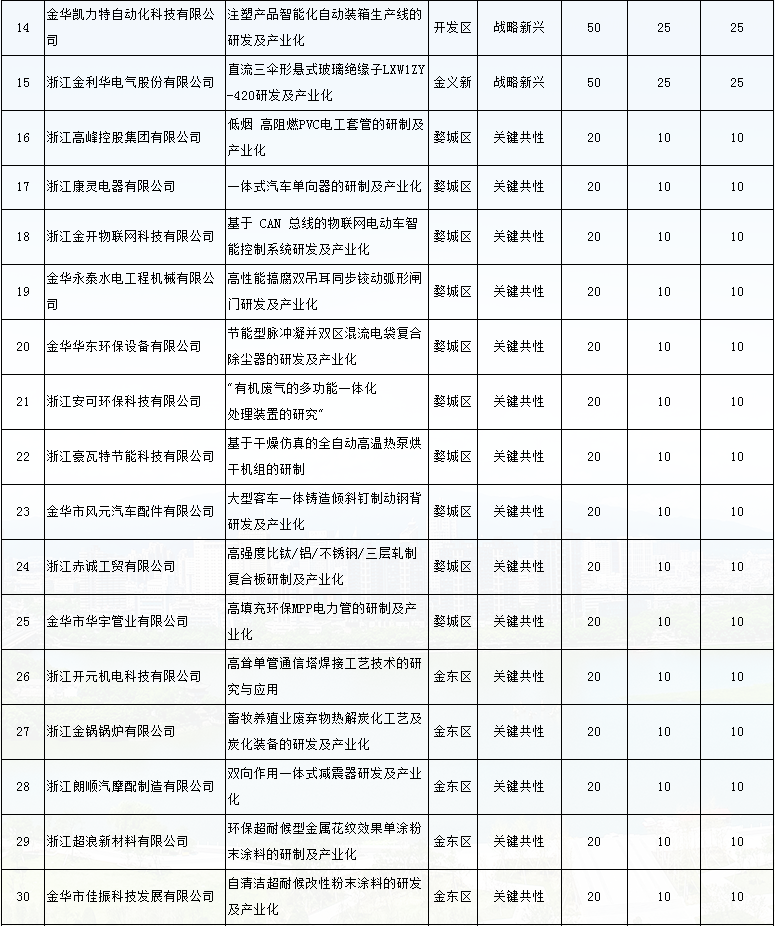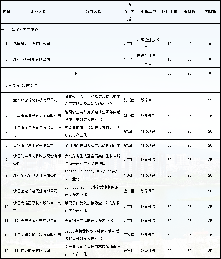 2017年金華市市級技術創(chuàng)新財政資金拔付情況的公示