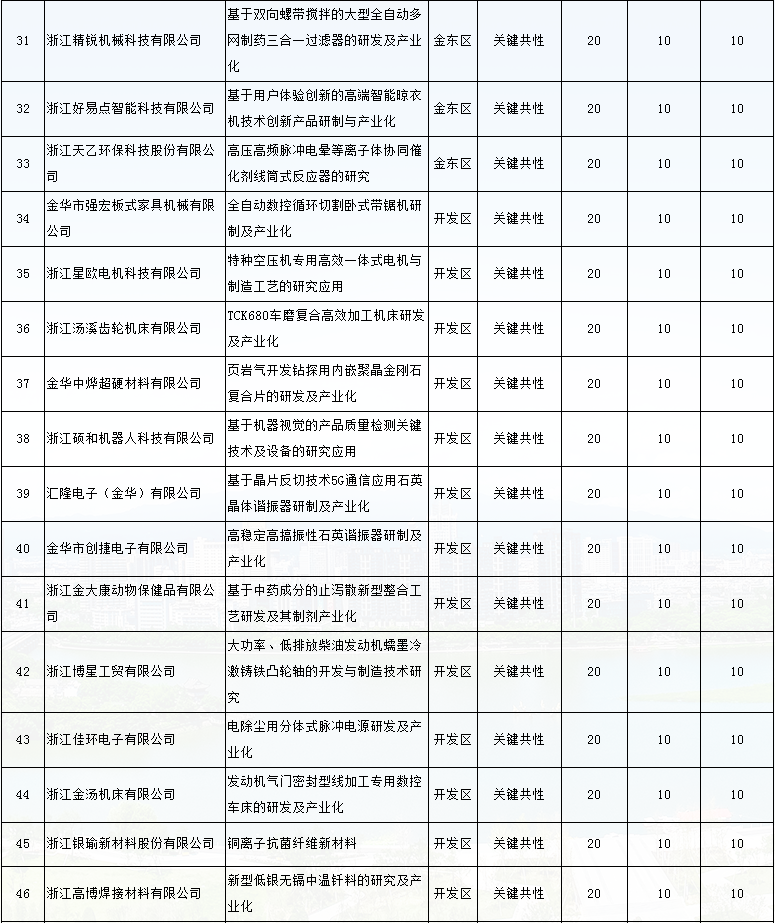 金華市2017年度技術創(chuàng)新財政專項資金匯總表