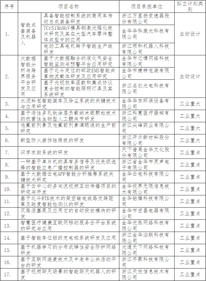 附件:1. 2018年金華市重點(diǎn)研發(fā)計(jì)劃擬立項(xiàng)目(工業(yè)類)