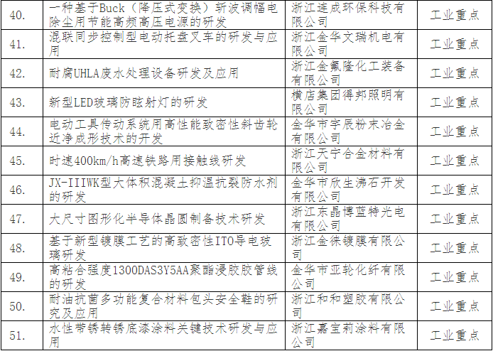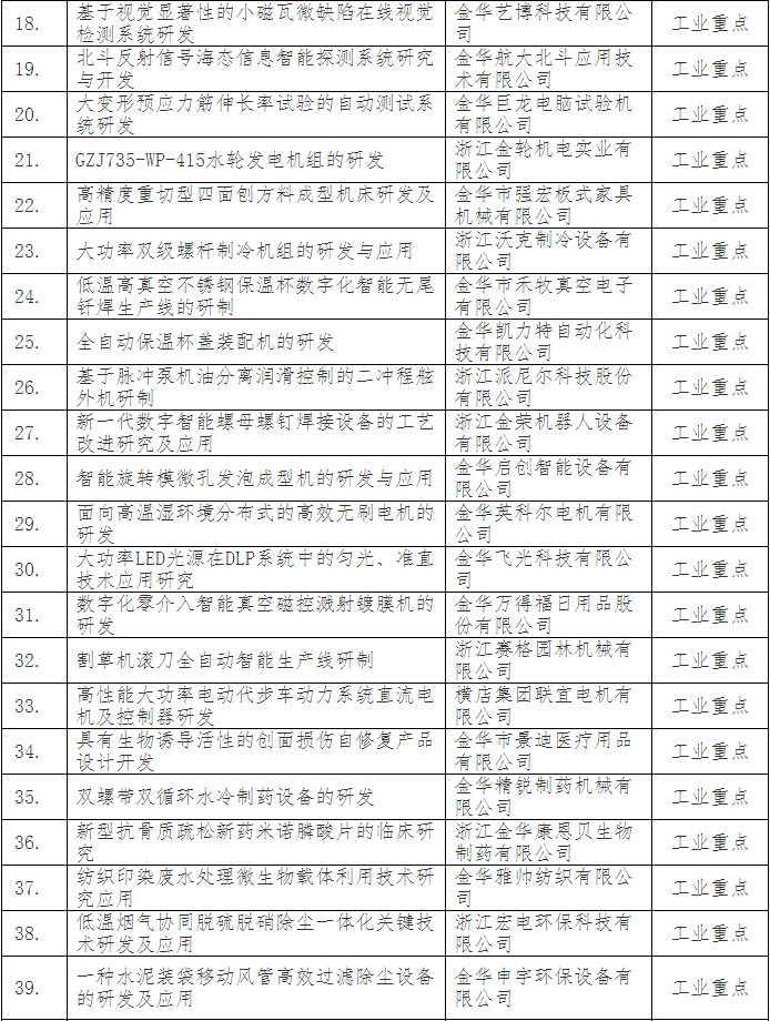 2018年金華市重點(diǎn)研發(fā)計(jì)劃擬立項(xiàng)目(工業(yè)類)