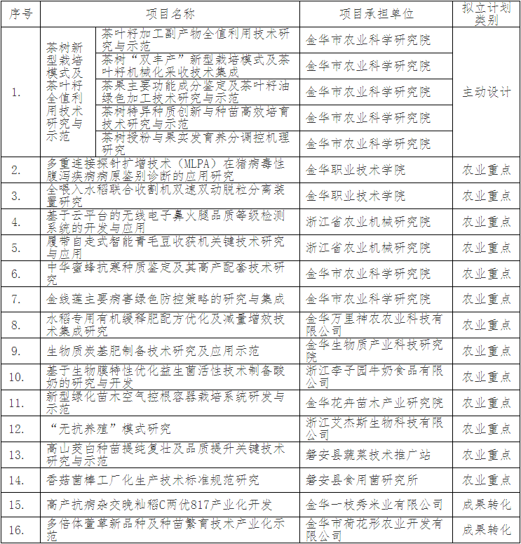 2. 2018年金華市重點(diǎn)研發(fā)計(jì)劃擬立項(xiàng)目(農(nóng)業(yè)類)