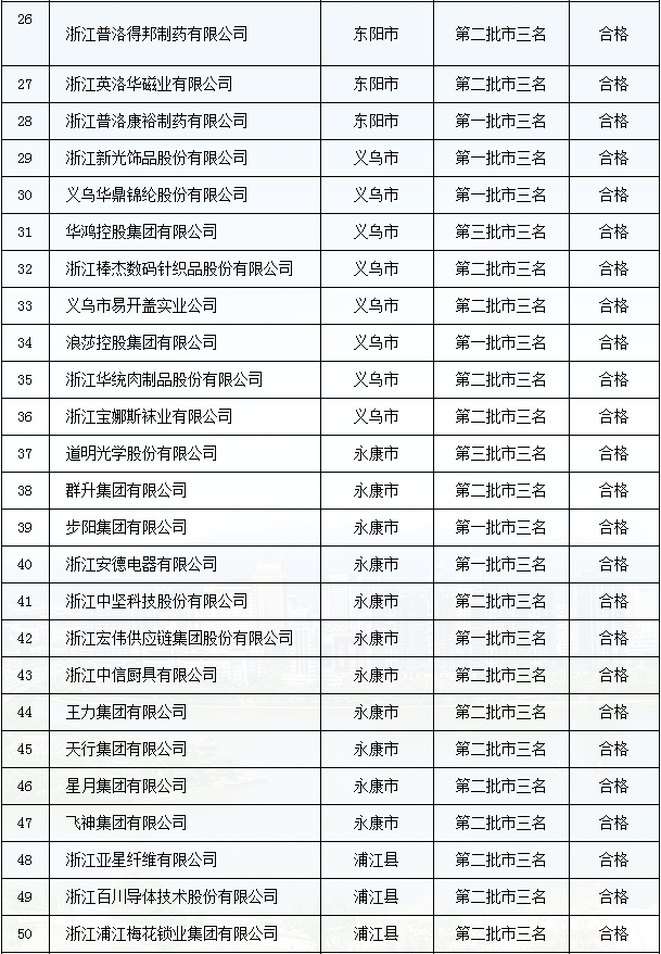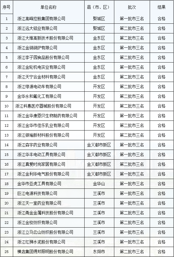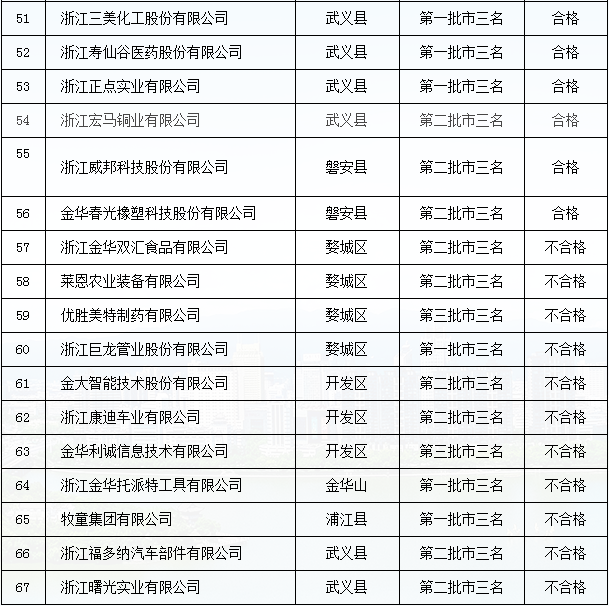 金華市”三名“培育試點企業(yè)復審結果