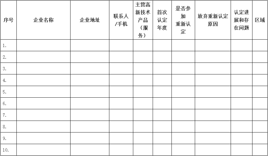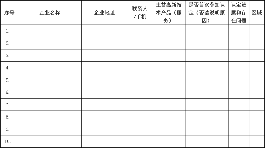 請各縣(市、區(qū))科技局和開發(fā)主體科技主管部門盡早謀劃、精心組織、狠抓落實、確保實效,并從1月開始,于每月15日、30日前填報《金華市新申報國家高新技術企業(yè)清單》(見附件1)報市科技局工業(yè)與高新技術處備案。